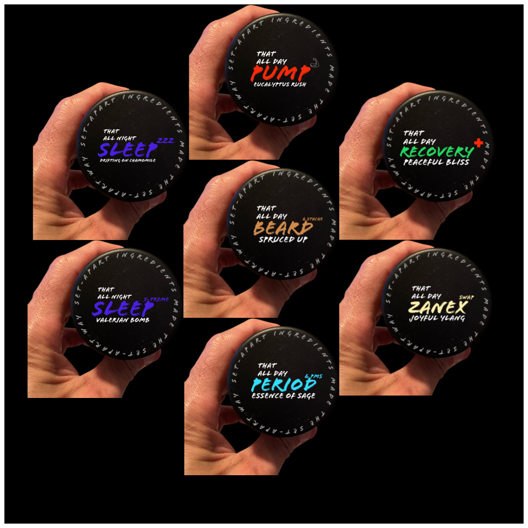 What is it, what's in it? - This is our collection of the 7 Blends that started it all for Josh and Modern Roots Life. It includes our Pump, Recovery, Zanex, Period & PMS, Beard & Stache, Sleep Zzz, and Sleep X-Treme Lotions. This wide variety aims to cover almost everything we deal with on a regular basis. Unfortunately, we do not swap these lotions for other lotions in our line....YET - There is about 280mg of Magnesium in each teaspoon of lotion.