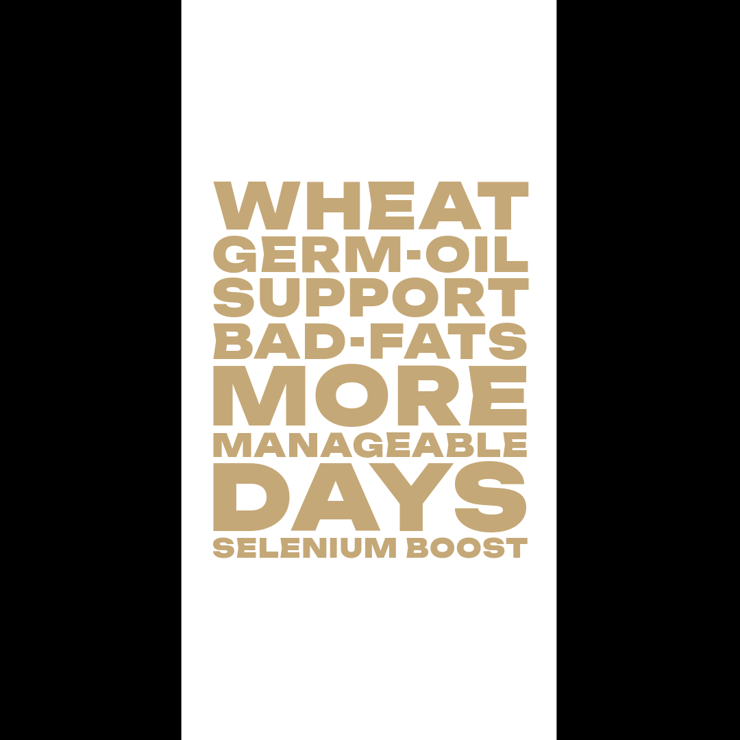 Wheat Germ Oil IQ is a rich source of whole-food Vitamin E compounds in their natural balance, along with naturally occurring Selenium. Unlike isolated or synthetic nutrients, whole-food complexes provide a spectrum of compounds in the ratios nature intended. Vitamin E is known for its antioxidant properties, helping to support overall cellular wellness and nutritional balance.