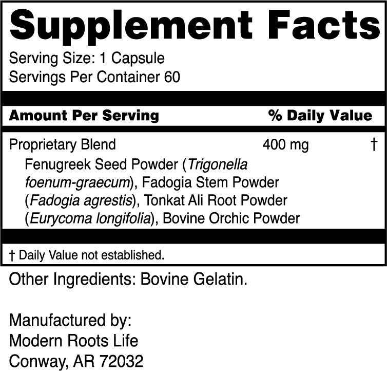 This product blends Fadogia Stem, Tongkat Ali Root, and 100% Grass-Fed Bovine Testicles.